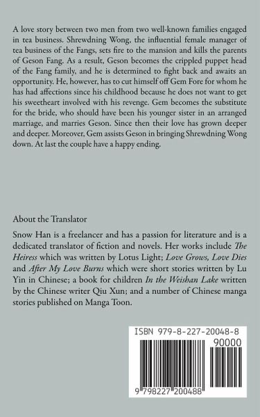 This is a love story between two men from two well-known families engaged in tea business. Shrewdning Wong, the influential female manager of tea business of the Fangs, sets fire to the mansion and kills the parents of Geson Fang. As a result, Geson becomes the crippled puppet head of the Fang family, and he is determined to fight back and awaits an opportunity. He, however, has to cut himself off Gem Fore for whom he has had affections since his childhood because he does not want to get his sweetheart involved with his revenge. Gem becomes the substitute for the bride, who should have been his younger sister in an arranged marriage, and marries Geson. Since then their love has grown deeper and deeper. Moreover, Gem assists Geson in bringing Shrewdning down. At last the couple have a happy ending.