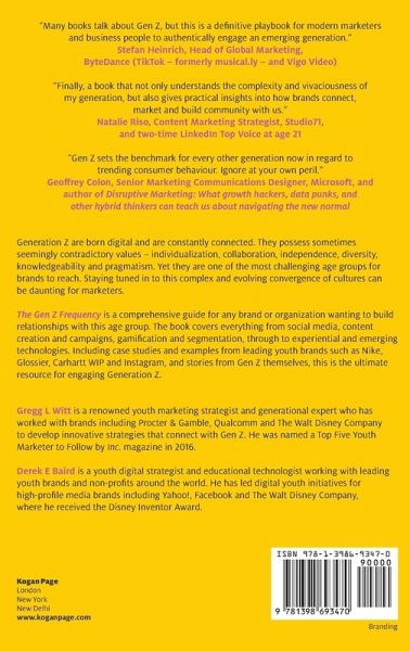 Gregg L. Witt is a renowned youth marketing strategist and generational expert, working with brands including Procter & Gamble, Qualcomm and The Walt Disney Company, to develop innovative strategies that connect with Gen Z. He was named a ""Top 5 Youth Marketer to Follow"" by Inc. Magazine in 2016. Derek E. Baird is a youth digital strategist and educational technologist, working with leading youth brands and non-profits around the world. He has led digital youth initiatives for high profile media brands including Yahoo!, Facebook, and The Walt Disney Company, where he received the Disney Inventor Award.