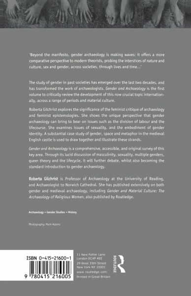 Gender and Archaeology is the first volume to critically review the development of this now key topic internationally, across a range of periods and material culture. ^l Roberta Gilchrist explores the significance of the feminist epistemologies. She shows the unique perspective that gender archaeology can bring to bear on issues such as division of labour and the life course. She examines issues of sexuality, and the embodiment of sexual identity. A substantial case study of gender space and metaphor in the medieval English castle is used to draw together and illustrate these issues.