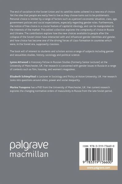 The end of socialism in the Soviet Union and its satellite states ushered in a new era of choice. Yet the idea that people are really free to live as they choose turns out to be problematic. Personal choice is limited by a range of factors such as a person's economic situation, class, age, government policies and social expectations, especially regarding gender roles. Furthermore, the notion of free choice is a crucial feature of capitalist ideology, and can be manipulated in the interests of the market. This edited collection explores the complexity of choice in Russia and Ukraine. The contributors explore how the new choices available to people after the collapse of the Soviet Union have interacted with and influenced gender identities and gender, and how choice has become one of the driving forces of class-formation in countries which were, in the Soviet era, supposedly classless.