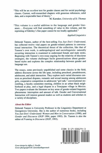 Two chapters review and evaluate the literature on key areas of gender-related linguistic phenomena: interruption and amount of talk. Gender and Conversational Inter action will interest general readers as well as students and scholars in a variety of disciplines including linguistics, sociolinguistics, anthropology, sociology, psychology, women's studies, and communications.