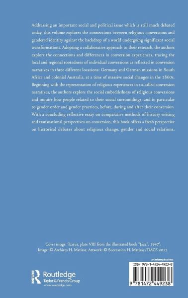 Addressing an important social and political issue which is still much debated today, this volume explores the connections between religious conversions and gendered identity against the backdrop of a world undergoing significant social transformations. Adopting a collaborative approach to their research, the authors explore the connections and differences in conversion experiences, tracing the local and regional rootedness of individual conversions as reflected in conversion narratives in three different locations: Germany and German missions in South Africa and colonial Australia, at a time of massive social changes in the 1860s. Beginning with the representation of religious experiences in so-called conversion narratives, the authors explore the social embeddedness of religious conversions and inquire how people related to their social surroundings, and in particular to gender order and gender practices, before, during and after their conversion. With a concluding reflective essay on comparative methods of history writing and transnational perspectives on conversion, this book offers a fresh perspective on historical debates about religious change, gender and social relations.