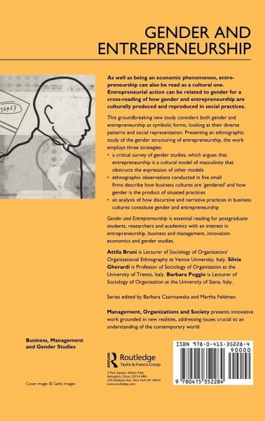 INTRODUCTION: Gender and entrepreneurship as entwined practices CHAPTER ONE: How a gender approach to entrepreneurship differs from the study of women entrepreneurs1.1 Entrepreneur-mentality1.2 Women entrepreneurs: the victims of gendered research practices1.3 Feminist organizations and the women's standpoint1.4 Can we do differently?CHAPTER TWO: Gender as a social practice, entrepreneurship as a form of masculinity: a theoretical framework2.1 Gender: a situated performance in the intersections between bodies, discourses and practices2.2 Making masculinity (in)visible2.3 The symbolics of masculinities: entrepreneurship as a form of masculinityConclusionsCHAPTER THREE: Doing and saying gender: a methodological framework3.1 Reflexive ethnography: from the 'red notebook' to the 'toolbox'3.2 The research context, data collection and data analysisConclusionsCHAPTER FOUR: Company ethnographies: the gendering of entrepreneurship and the enterprising of gender4.1 Asie Welders4.2 Asie Welders: an anti-heroic story4.3 Erba Shirts4.4 Erba Shirts: an ordinary case of entrepreneurship4.5 Frau Kitchens4.6 Frau Kitches: a matter of honour?4.7 LeCò Fashion4.8 LeCò: between tradition and innovation4.9 Atlantis Magazine4.10 Atlantis: does heterosexuality matter?ConclusionsCHAPTER FIVE: Gender and entrepreneurship as discursive practice5.1 The 'ingredients' of entrepreneurship: risk, money, innovation and gender neutrality5.2 Constructing gender through risk, money and innovation5.3 A 'normal' woman entrepreneur?5.4 Narrating entrepreneurship and genderConclusionsCHAPTER SIX: 'Doing family' while doing gender and business: concluding remarksAppendix: Ethnography of practices and ethnographic practiceReferences
