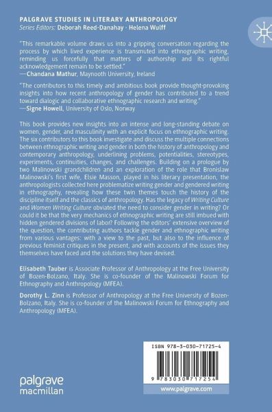 This book provides new insights into an intense and long-standing debate on women, gender, and masculinity with an explicit focus on ethnographic writing. The six contributors to this book investigate and discuss the multiple connections between ethnographic writing and gender in both the history of anthropology and contemporary anthropology, underlining problems, potentialities, stereotypes, experiments, continuities, changes, and challenges. Building on a prologue by two Malinowski grandchildren and an exploration of the role that Bronislaw Malinowski's first wife, Elsie Masson, played in his literary presentation, the anthropologists collected here problematize writing gender and gendered writing in ethnography, revealing how these twin themes touch the history of the discipline itself and the classics of anthropology. Has the legacy of Writing Culture and Women Writing Culture obviated the need to consider gender in writing? Or could it be thatthe very mechanics of ethnographic writing are still imbued with hidden gendered divisions of labor? Following the editors' extensive overview of the question, the contributing authors tackle gender and ethnographic writing from various vantages: with a view to the past, but also to the influence of previous feminist critiques in the present, and with accounts of the issues they themselves have faced and the solutions they have devised.