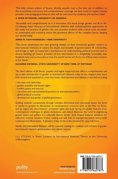 "This book synthesizes the ever growing debate on how immensely gender matters in international relations. It covers the depth and breadth of gender-aware IR scholarship, feminist and non-feminist alike, and brings to light its important contributions to understanding political practice and to theory building. Jill Steans provides all this information in a delightfully accessible way. Students who are curious about how the world works will find a lot of first class answers in her book."