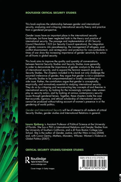 This book defines the relationship between gender and international security, analyzing and critiquing international security theory and practice from a gendered perspective. Gender issues have an important place in the international security landscape, but have been neglected both in the theory and practice of international security. The passage and implementation of UN Security Council Resolution 1325 (on Security Council operations), the integration of gender concerns into peacekeeping, the management of refugees, post-conflict disarmament and reintegration and protection for non-combatants in times of war shows the increasing importance of gender sensitivity for actors on all fronts in global security. This book aims to improve the quality and quantity of conversations between feminist security studies and security studies more generally, in order to demonstrate the importance of gender analysis to the study of international security, and to expand the feminist research program in Security Studies. The chapters included in this book not only challenge the assumed irrelevance of gender, they argue that gender is not a subsection of security studies to be compartmentalized or briefly considered as a side issue. Rather, the contributors argue that gender is conceptually, empirically, and normatively essential to studying international security. They do so by critiquing and reconstructing key concepts of and theories in international security, by looking for the increasingly complex roles women play as security actors, and by looking at various contemporary security issues through gendered lenses. Together, these chapters make the case that accurate, rigorous, and ethical scholarship of international security cannot be produced without taking account of women's presence in or the gendering of world politics. This book will be of interest to all students of critical security studies, gender studies and International Relations in general. Laura Sjoberg is Assistant Professor of Political Science at the University of Florida. She has a Phd in International Relations and Gender Studies from the University of Southern California and is the author of Gender, Justice, and the Wars in Iraq (2006) and, with Caron Gentry, Mothers, Monsters, Whores: Women's Violence in Global Politics (2007)