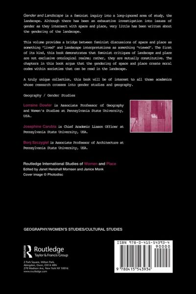 Gender and Landscape is a feminist inquiry into a long-ignored area of study: the landscape. Although there has been an exhaustive investigation into issues of gender as they intersect with space and place, very little has been written about the gendering of the landscape. This volume provides a bridge between feminist discussions of space and place as something 'lived' and landscape interpretations as something 'viewed'.