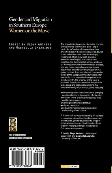 The important role women play in the process of migration to the Western bloc - and in particular to Southern Europe where they often find jobs in the domestic service, tourist or sex industries - has been increasingly recognized. This timely book provides essential new insights into the forms of migration and the impact of gender relations on the migration and accommodation process, and also raises general conceptual issues about ways of understanding migration in a global context. At a time when all the member states of the European Union have called for a reduction in immigration in response to its steady growth, the urgency of the topic is apparent. Contributors examine the possible legal, social and economic problems that increased immigration may produce, including: - female migration and its relation to changing gender relations in the country of migration; - different forms of exclusion faced by male and female migrants; working conditions and status; - migrant networks; - and women's role in reproducing and maintaining ethnic culture.This book will be essential reading for courses in migration, nationalism, Mediterranean and area studies, gender studies and a range of social science courses. It will also be of use to policy makers and those interested in European developments.