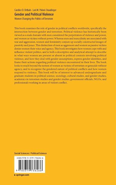 Chapter 1: Introduction.- Part I: Women as Perpetrators.- Women as Guerillas.- Women in Terrorist Cells.- Part II: Women as Victims of Terrorism.- Women as Victims of Genocide and Gendercide.- Women and girls as targets of terrorist cells.- Part III: Women as Respondents.- Social Movements.- Memory Politics.- Elites.- Part IV: Public Opinion and Terrorism.- Interactions between sex, gender and support for terrorism.- Conclusion.