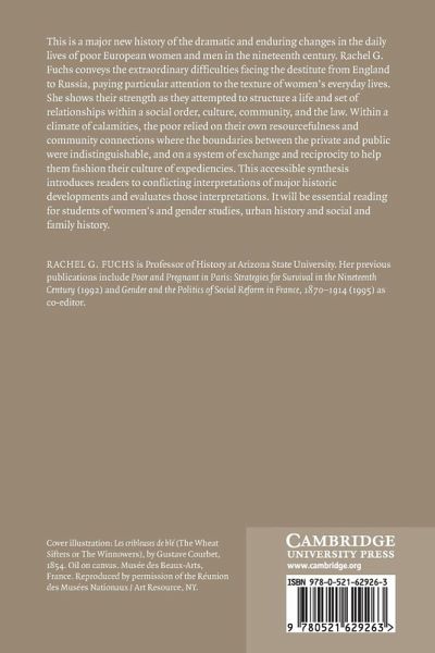 This book is a major history of the dramatic and enduring changes in the daily lives of poor European women and men in the nineteenth century. Rachel G. Fuchs conveys the extraordinary difficulties facing the destitute from England to Russia, paying particular attention to the texture of women's everyday lives. She shows their strength as they attempted to structure a life and set of relationships within a social order, culture, community, and the law. Within a climate of calamities, the poor relied on their own resourcefulness and community connections where the boundaries between the private and public were indistinguishable, and on a system of exchange and reciprocity to help them fashion their culture of expediencies. This accessible synthesis introduces readers to conflicting interpretations of major historic developments and evaluates those interpretations. It will be essential reading for students of women's and gender studies, urban history and social and family history.