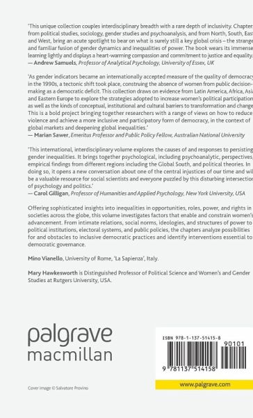 'This international, interdisciplinary volume explores the causes of and responses to persisting gender inequalities. It brings together psychological including psychoanalytic perspectives, empirical findings from different regions including the Global South, and political theories. In doing so, it opens a new conversation about one of the central injustices of our time and will be a valuable resource for social scientists and everyone puzzled by this disturbing intersection of psychology and politics.' Carol Gilligan, University Professor, New York University, and author of In a Different Voice and Joining the Resistance