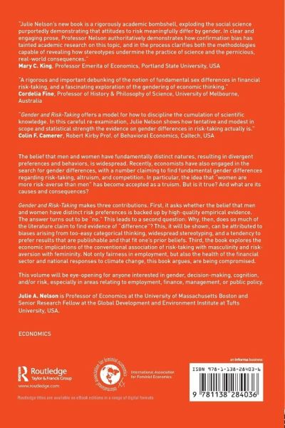'Gender and Risk-Taking offers a model for how to discipline the cumulation of scientific knowledge. In this careful re-examination, Julie Nelson shows how tentative and modest in scope and statistical strength, the evidence on gender differences in risk-taking actually is.' - Colin F. Camerer, Robert Kirby Prof. of Behavioral Economics, Caltech, USA