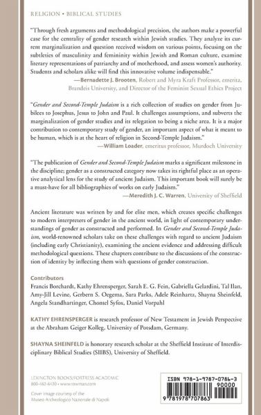 Introduction: Gender and Second Temple Judaism: Challenges and Possibilities Shayna Sheinfeld Chapter 1 "The Brooten Phenomenon": Moving Women from the Margins in Second-Temple and New Testament Scholarship Sara Parks Chapter 2 Women Itinerants, Jesus of Nazareth, and Historical-Critical Approaches: Reevaluating the Con-sensus Amy-Jill Levine Chapter 3 Paul, the Man: Enigmatic Images Kathy Ehrensperger Chapter 4 From Pain to Redemption: 1 Timothy 2:15 in its Jewish Context Sarah E.G. Fein Chapter 5 Traversing the Boundaries of Gender: Rebekah's Usurpation of the Patriarchal Role in the Book of Jubilees Chontel Syfox Chapter 6 The Reinforcement of Patriarchy and the (De)Construction of Gender Roles in Jubilees' Recep-tion of the Jacob-Esau-Narrative Daniel Vorpahl Chapter 7 Women and Gender in the Gospel of John Adele Reinhartz Chapter 8 The Framing of Female Knowledge in the Prologue of the Sibylline Oracles Francis Borchardt Chapter 9 Female Authorship in Jewis