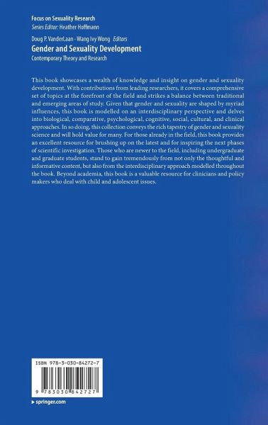 1-Measuring Sex Differences and Similarities.- 2-Prenatal Steroid Hormones and Sex Differences in Juvenile Rhesus Macaque Behavior.- 3-Biological Approaches to Studying Gender Development.- 4-Social Influences on Gender Development: Theory and Context.- 5-Contemporary Cognitive Approaches to Gender Development: New Schemas, New Directions, and New Conceptualizations of Gender.- 6-Origins and Consequences of Childhood Gender Segregation: Towards an Integrative Developmental Systems Model.- 7-Gender, Toys, and Play: How Gendered Early Experiences Shape Later Development.- 8-Family Gender Socialization in Childhood and Adolescence.- 9-Gender Stereotypes and Education.- 10-Gender-Based Discrimination in Childhood and Adolescence.- 11-Gender and Sexuality in Disorders/Differences of Sex Development.- 12-Sexuality Development in Childhood.- 13-Sexual Pleasure in Adolescence: A Developmental Sexual Embodiment Perspective.- 14-Pornography Use in Adolescence and Young Adulthood.- 15-A Reviewof Theoretical Models and Lifespan Approaches to the Study of Sexual Offending.- 16-Learned but Not Chosen: A Reward Competition Feedback Model for the Origins of Sexual Preferences and Orientations.- 17-Carving the Biodevelopment of Same-Sex Sexual Orientation at Its Joints.- 18-Mental Health Among LGBT Youth.- 19-Asexuality: When Sexual Attraction is Lacking.- 20-Erotic Target Identity Inversions.- 21-Consensual Non-monogamy from a Developmental Perspective.