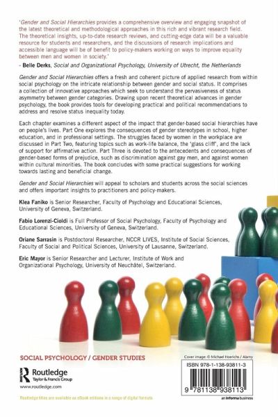 Gender and Social Hierarchies offers a fresh and coherent picture of applied research from within social psychology on the intricate relationship between gender and social status. It comprises a collection of innovative approaches which seek to understand the pervasiveness of status asymmetry between gender categories. Drawing upon recent theoretical advances in gender psychology, the book provides tools for developing practical and political recommendations to address and resolve status inequality today. Each chapter examines a different aspect of the impact that gender-based social hierarchies have on people's lives. Part One explores the consequences of gender stereotypes in school, higher education, and in professional settings. The struggles faced by women in the workplace are discussed in Part Two, featuring topics such as work-life balance, the 'glass cliff', and the lack of support for affirmative action. Part Three is devoted to the antecedents and consequences of gender-based forms of prejudice, such as discrimination against gay men, and against women within cultural minorities. The book concludes with some practical suggestions for working towards lasting and beneficial change. Gender and Social Hierarchies will appeal to scholars and students across the social sciences and offers important insights to practitioners and policy-makers.