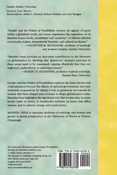 Gender and the Politics of Possibilities explores the lesser-known side of globalization beyond the effects of national governments and multinational cooperations by taking a look at grassroots movements by women that have and continue to shape globalization today. Manisha Desai highlights the significant role that women play in cross-border trade in Africa, in transborder activism on issues that affect women, and in cultural change and social justice.