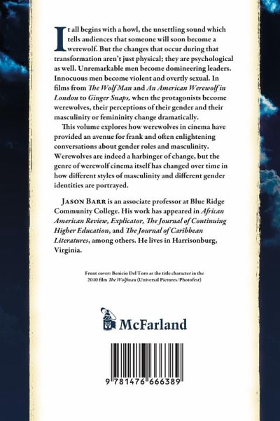 It all begins with a howl, the unsettling sound which tells audiences that someone will soon become a werewolf. But the changes that occur during that transformation aren't just physical; they are psychological as well. Unremarkable men become domineering leaders. Innocuous men become violent and overtly sexual. In films from The Wolf Man and An American Werewolf in London to Ginger Snaps, when the protagonists become werewolves, their perceptions of their gender and their masculinity or femininity change dramatically. This volume explores how werewolves in cinema have provided an avenue for frank and often enlightening conversations about gender roles and masculinity. Werewolves are indeed a harbinger of change, but the genre of werewolf cinema itself has changed over time in how different styles of masculinity and different gender identities are portrayed.