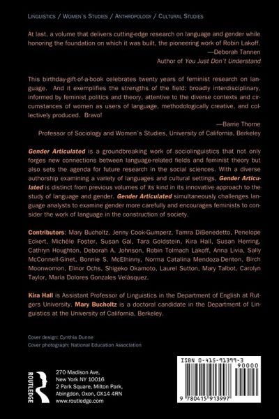 Gender Articulated forges new connections between language-related field and feminist theory. The essays presented here examine a range of cultures, languages and settings explicitly connecting feminist theory to language research.