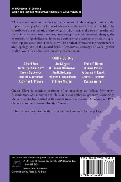 This new volume from SEA illuminates the importance of gender as a frame of reference in the study of economic life. The contributors are economic anthropologists who consider the role of gender and work in a cross-cultural context, examining issues of: historical change, the construction of globalization, household authority and entitlement, and entrepreneurship and autonomy. The book will be a valuable resource for researchers in anthropology and in the related fields of economics, sociology of work, gender studies, women's studies, and economic development.