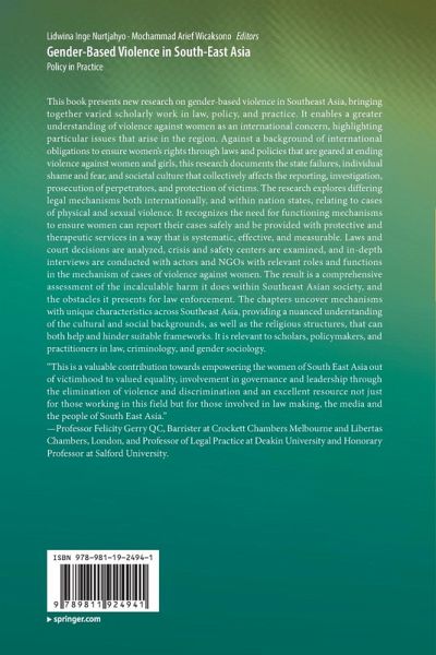 This book presents new research on gender-based violence in Southeast Asia, bringing together varied scholarly work in law, policy, and practice. It enables a greater understanding of violence against women as an international concern, highlighting particular issues that arise in the region. Against a background of international obligations to ensure women's rights through laws and policies that are geared at ending violence against women and girls, this research documents the state failures, individual shame and fear, and societal culture that collectively affects the reporting, investigation, prosecution of perpetrators, and protection of victims. The research explores differing legal mechanisms both internationally, and within nation states, relating to cases of physical and sexual violence. It recognizes the need for functioning mechanisms to ensure women can report their cases safely and be provided with protective and therapeutic services in a way that is systematic, effective, and measurable. Laws and court decisions are analyzed, crisis and safety centers are examined, and in-depth interviews are conducted with actors and NGOs with relevant roles and functions in the mechanism of cases of violence against women. The result is a comprehensive assessment of the incalculable harm it does within Southeast Asian society, and the obstacles it presents for law enforcement. The chapters uncover mechanisms with unique characteristics across Southeast Asia, providing a nuanced understanding of the cultural and social backgrounds, as well as the religious structures, that can both help and hinder suitable frameworks. It is relevant to scholars, policymakers, and practitioners in law, criminology, and gender sociology.