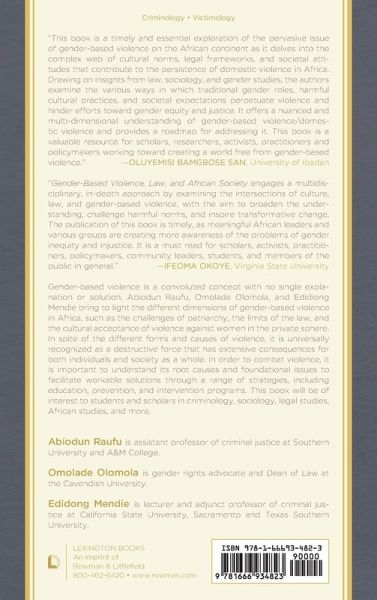 This book offers contemporary perspectives on the different forms of gender-based violence in Africa through a legal, cultural, and sociological lens.