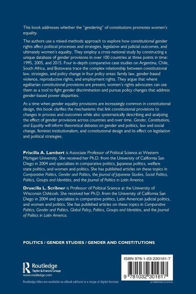 At a time when gender equality provisions are increasingly common in constitutional design, this book clarifies the mechanisms that link constitutional provisions to changes in process and outcomes while also systematically describing and analyzing the effect of gender provisions across countries and over time. Gender, Constitutions, and Equality will inform theoretical debates on gender and politics, law and social change, feminist institutionalism, and constitutional design and its effect on legislation and political strategies.