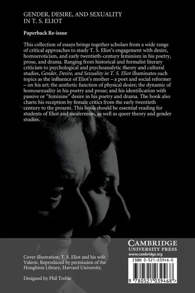 This collection of new essays brings together scholars from a wide range of critical approaches to study T. S. Eliot's engagement with desire, homoeroticism and early twentieth-century feminism in his poetry, prose and drama. Ranging from historical and formalist literary criticism to psychological and psychoanalytic theory and cultural studies, Gender, Desire and Sexuality in T. S. Eliot illuminates such topics as the influence of Eliot's mother - a poet and social reformer - on his art; the aesthetic function of physical desire; the dynamic of homosexuality in his poetry and prose; and his identification with passive or 'feminine' desire in his poetry and drama. The book also charts his reception by female critics from the early twentieth century to the present. This book should be essential reading for students of Eliot and Modernism, as well as queer theory and gender studies.