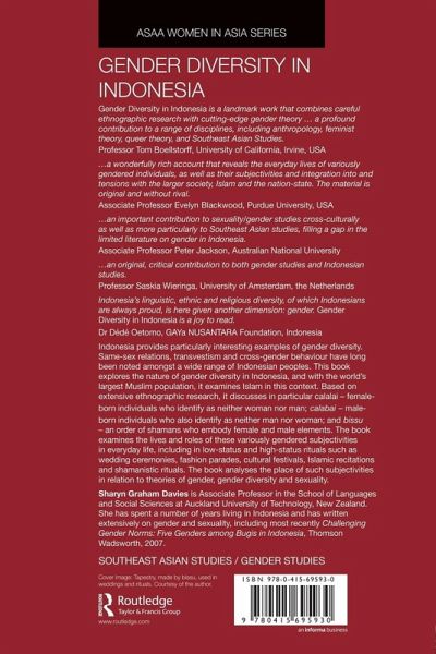 "Gender Diversity in Indonesia is a landmark work that combines careful ethnographic research with cutting-edge gender theory ... a profound contribution to a range of disciplines, including anthropology, feminist theory, queer theory, and Southeast Asian Studies."
