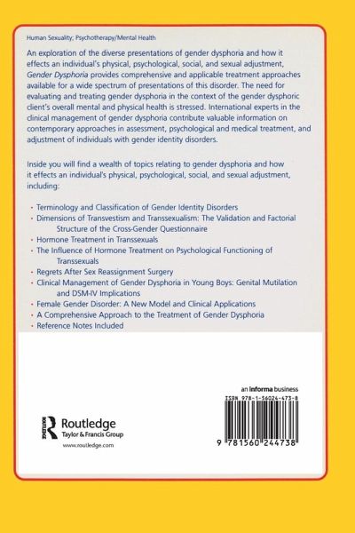An exploration of the diverse presentations of gender dysphoria and how it affects an individual's physical, psychological, social, and sexual adjustment, Gender Dysphoria provides comprehensive and applicable treatment approaches available for a wide spectrum of presentations of this disorder.