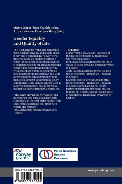 This book engages with a critical perspective on gender equality and quality of life. It provides a comprehensive overview of theoretical and methodological frameworks for exploring both concepts which is complemented by the analysis of gender equality policies in Poland and Norway. With contributors from sociology to history and health studies, it draws on a wide range of examples to examine a multidimensional concept underpinning policy commitments and actions in areas such as family, labour market, health, reproductive rights or participation in political life.