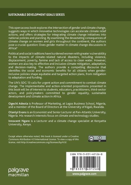 This open access book explores the intersection of gender and climate change, suggests ways in which innovative technologies can accelerate climate relief actions, and offers strategies for integrating climate change initiatives into national policies and planning. By examining the devastating consequences of climate change on women and girls throughout the continent, the authors pose a crucial question: Does gender matter in climate change discussions in Africa?