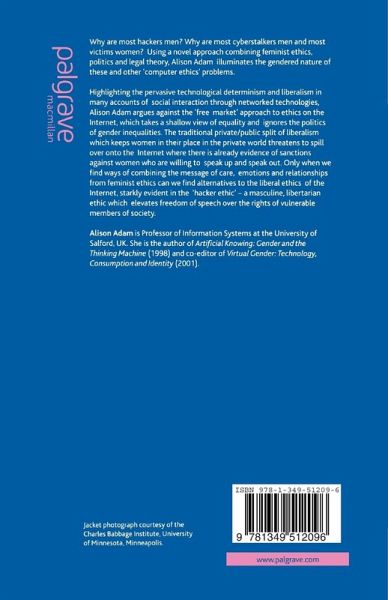 This book brings feminist philosophy, in the shape of feminist ethics, politics and legal theory, to an analysis of computer ethics problems including hacking, privacy, surveillance, cyberstalking and Internet dating. Adam claims that these issues cannot be properly understood unless we see them as problems relating to gender. For the first time, these issues are put under the feminist spotlight to show that traditional responses reproduce the public/private split which has so often reinforced the causes of women's oppression.