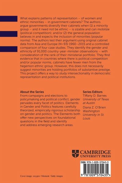 What explains patterns of representation - of women and ethnic minorities - in government cabinets? The authors argue governments diversify their cabinets when (1) a minority group is sizable and can mobilize (political competition); and/or (2) the general population believes in and expects the inclusion of minorities (popular norms).