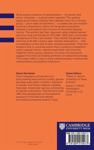 What explains patterns of representation - of women and ethnic minorities - in government cabinets? The authors argue governments diversify their cabinets when (1) a minority group is sizable and can mobilize (political competition); and/or (2) the general population believes in and expects the inclusion of minorities (popular norms).