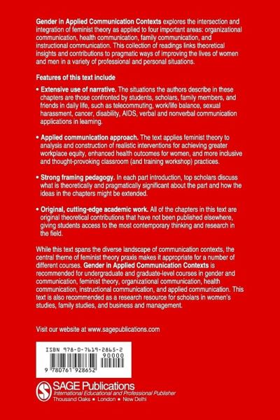 Gender in Applied Communication Contexts explores the intersection and integration of feminist theory as applied to four important areas: organizational communication, health communication, family communication, and instructional communication. This collection of readings links theoretical insights and contributions to pragmatic ways of improving the lives of women and men in a variety of professional and personal situations. Gender in Applied Communication Contexts is recommended for upper-division and graduate-level courses in gender and communication, feminist theory, organizational communication, health communication, instructional communication, and applied communication. This anthology is also recommended as a research resource for scholars in Women's Studies, Family Studies, and Business and Management.