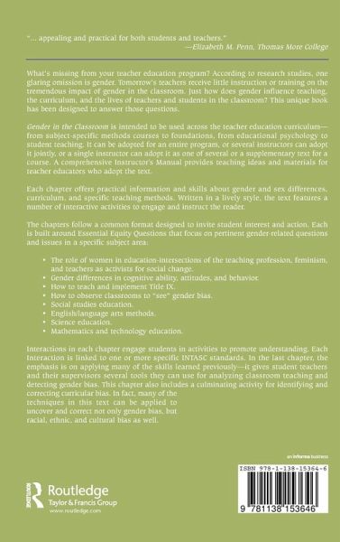 Designed to fit into any core course in a typical teacher education curriculum, this text offers information and skills about gender and sex differences, curriculum content, and specific teaching methods geared to helping all teachers and prospective tea