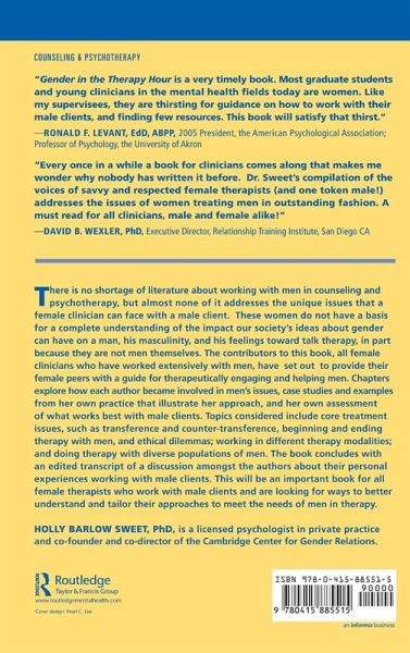 There is no shortage of literature about working with men in counseling and psychotherapy, but almost none of it addresses the unique issues that a female clinician can face with a male client. These women do not have a basis for a complete understanding of the impact our society's ideas about gender can have on a man, his masculinity, and his feelings toward talk therapy, in part because they are not men themselves. The contributors to this book, all female clinicians who have worked extensively with men, have set out to provide their female peers with a guide for therapeutically engaging and helping men. Chapters explore how each author became involved in men's issues, case studies and examples from her own practice that illustrate her approach, and her own assessment of what works best with male clients. Topics considered include core treatment issues, such as transference and counter-transference, beginning and ending therapy with men, and ethical dilemmas; working in different therapy modalities; and doing therapy with diverse populations of men. The book concludes with an edited transcript of a discussion amongst the authors about their personal experiences working with male clients. This will be an important book for all female therapists who work with male clients and are looking for ways to better understand and tailor their approaches to meet the needs of men in therapy.