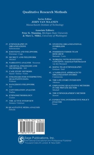 This Second Edition summarizes the state of the art of gender issues in fieldwork both in anthropology and sociology. Warren shows how the researcher's gender affects both the fieldwork relationships and the production of ethnography. The authors focus is more empirical than theoretical; using literature on gender and ethnography, together with their own experiences as women ethnographers, they focus on ways in which researchers represent these experiences through narrative.