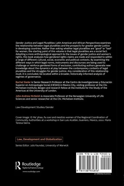 Gender Justice and Legal Pluralities: Latin American and African Perspectives examines the relationship between legal pluralities and the prospects for greater gender justice in developing countries. Rather than asking whether legal pluralities are 'good' or 'bad' for women, the starting point of this volume is that legal pluralities are a social fact. Adopting a more anthropological approach to the issues of gender justice and women's rights, it analyzes how gendered rights claims are made and responded to within a range of different cultural, social, economic and political contexts. By examining the different ways in which legal norms, instruments and discourses are being used to challenge or reinforce gendered forms of exclusion, contributing authors generate new knowledge about the dynamics at play between the contemporary contexts of legal pluralities and the struggles for gender justice. Any consideration of this relationship must, it is concluded, be located within a broader, historically informed analysis of regimes of governance.