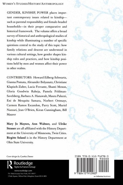 1: Introduction: Toward a Comparative History of Gender, Kinship and Power; 1: Kinship Systems; 1: The Father, the Phallus, and the Seminal Word: Dilemmas of Patrilineality in Ancient Judaism; 2: Blood Ties and Semen Ties: Consanguinity and Agnation in Roman Law; 3: Kinship Between the Lines: The Patriline, the Concubine and the Adopted Son in Late Imperial China; 4: Musings on Matriliny: Understandings and Social Relations among the Sursurunga of New Ireland; 2: Women's Perspectives On Kinship; 5: Family Trees and the Construction of Kinship in Renaissance Italy; 6: Marriage and Women's Subjectivity in a Patrilineal System: The Case of Early Modern Bologna; 7: Male Authority and Female Autonomy: A Study of the Matrilineal Nayars of Kerala, South India; 8: The Limits of Patriliny: Kinship, Gender and Women's Speech Practices in Rural North India; 9: Cooking Inside: Kinship and Gender in Bangangté Idioms of Marriage and Procreation; 3: "Fish without Bicycles"; 10: Patriarchal Provisions for Widows and Orphans in Medieval London; 11: Work and Residence of "Women Alone" in the Context of a Patrilineal System (Eighteenth- and Nineteenth-Century Northern Italy); 12: Heading Households and Surviving in a Man's World: Brazilian Women in the Nineteenth Century; 4: Parents, Breadwinners, Providers; 13: Illegitimacy and Low-Wage Economy in Highland Austria and Jamaica; 14: Women and Kinship in Propertyless Classes in Western Europe in the Nineteenth Century; 15: The Social Construction of Wife and Mother: Women in Porfirian Mexico, 1880-1917; 16: Matrifocal Males: Gender, Perception and Experience of the Domestic Domain in Brazil; 5: Gender and Kinship in Changing Political Economies; 17: The Waxing and Waning of Matrilineality in São Paulo, Brazil: Historical Variations in an Ambilineal System, 1500-1900; 18: Divorced from the Land: Accommodation Strategies of Indian Women in Eighteenth-Century New England; 19: Let's Go to My Place: Residence, Gender and Power in a Mende Community; 20: The Land, the Law and Legitimate Children: Thinking through Gender, Kinship and Nation in the British Virgin Islands