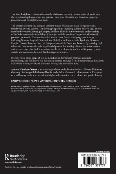 The chapters describe and compare different modes of acquisition and intergenerational transfer via law and custom. The varying perspectives, including cultural history, legal history, social and economic history, philosophy, and law, allow for a more nuanced understanding of the links between the movability of an object and the gender of the person who owned, possessed, or used it. Case studies and examples come from a wide geographical range, including Norway, England, Scotland, the Holy Roman Empire, Italy, Tyrol, the Ottoman Empire, Greece, Romania, and the European colonies in Brazil and Jamaica. By covering both urban and rural areas and exploring all social groups, from ruling elites to the lower strata of society, the chapters offer fresh insight into the division of mobile and immobile property that socially and economically posed disadvantages for women.