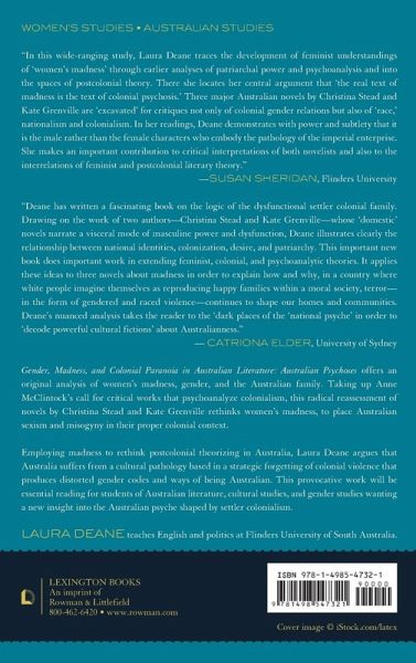 This book offers an original and compelling analysis of women's madness, gender and the Australian family. Taking up Anne McClintock's call for critical works that psychoanalyze colonialism, this radical re-assessment of novels by Christina Stead and Kate Grenville provides a sustained account of women's madness and masculine colonial psychosis from a feminist postcolonial perspective. This book rethinks women's madness in the context of Australian colonialism. Taking novels of madness by Christina Stead and Kate Grenville as its point of critical departure, it applies a post-Reconciliation lens to the study of Australia's gender and racial codes, to place Australian sexism and misogyny in their proper colonial context. Employing madness as a frame to rethink postcolonial theorizing in Australia, Gender, Madness, and Colonial Paranoia in Australian Literature psychoanalyses colonialism to argue that Australia suffers from a cultural pathology based in the strategic forgetting of colonial violence. This pathology takes the form of colonial paranoia about 'race' and gender, producing distorted gender codes and ways of being Australian. This book maps the contours of Australian colonial paranoia, weaving feminist literary theory, psychoanalysis and postcolonial theory with poststructuralist approaches to reassess the traditional canon of critical madness scholarship, and the place of women's writing within it. This provocative work marks a radical departure from much recent feminist, cultural, and postcolonial criticism, and will be essential reading for students of Australian literature, cultural studies and gender studies wanting a new insight into how the Australian psyche is shaped by settler colonialism.