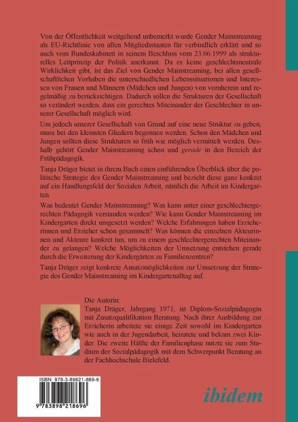 Um jedoch unserer Gesellschaft von Grund auf eine neue Struktur zu geben, muss bei den kleinsten Gliedern begonnen werden. Schon den Mädchen und Jungen sollten diese Strukturen so früh wie möglich vermittelt werden. Deshalb gehört Gender Mainstreaming schon und gerade in den Bereich der Frühpädagogik. Tanja Dräger bietet in ihrem Buch einen einführenden Überblick über die politische Strategie des Gender Mainstreaming und bezieht diese ganz konkret auf ein Handlungsfeld der Sozialen Arbeit, nämlich die Arbeit im Kindergarten.Was bedeutet Gender Mainstreaming? Was kann unter einer geschlechtergerechten Pädagogik verstanden werden? Wie kann Gender Mainstreaming im Kindergarten direkt umgesetzt werden? Welche Erfahrungen haben Erzieherinnen und Erzieher schon gesammelt? Was können die einzelnen Akteurinnen und Akteure konkret tun, um zu einem geschlechtergerechten Miteinander zu gelangen? Welche Möglichkeiten der Umsetzung entstehen gerade durch die Erweiterung der Kindergärten zu Familienzentren?
