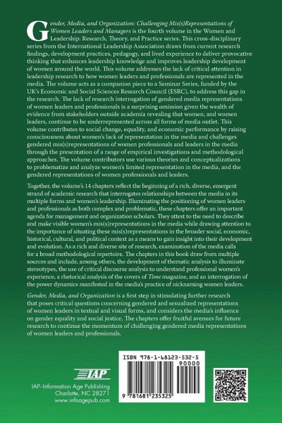 A volume in Women and Leadership: Research, Theory, and Practice Series Editors: Susan R. Madsen, Faith Wambura Ngunjiri, and Karen A. Longman Gender, Media, and Organization: Challenging Mis(s)Representations of Women Leaders and Managers is the fourth volume in the Women and Leadership: Research, Theory, and Practice series. This cross¿disciplinary series from the International Leadership Association draws from current research findings, development practices, pedagogy, and lived experience to deliver provocative thinking that enhances leadership knowledge and improves leadership development of women around the world. This volume addresses the lack of critical attention in leadership research to how women leaders and professionals are represented in the media. The volume acts as a companion piece to a Seminar Series, funded by the UK's Economic and Social Sciences Research Council (ESRC), to address this gap in the research. The lack of research interrogation of gendered media representations of women leaders and professionals is a surprising omission given the wealth of evidence from stakeholders outside academia revealing that women, and women leaders, continue to be underrepresented across all forms of media outlet. This volume contributes to social change, equality, and economic performance by raising consciousness about women's lack of representation in the media and challenges gendered mis(s)representations of women professionals and leaders in the media through the presentation of a range of empirical investigations and methodological approaches. The volume contributors use various theories and conceptualizations to problematize and analyze women's limited representation in the media, and the gendered representations of women professionals and leaders. Together, the volume's 14 chapters reflect the beginning of a rich, diverse, emergent strand of academic research that interrogates relationships between the media in its multiple forms and women's leadership. Illuminating the positioning of women leaders and professionals as both complex and problematic, these chapters offer an important agenda for management and organization scholars. They attest to the need to describe and make visible women's mis(s)representations in the media while drawing attention to the importance of situating these mis(s) representations in the broader social, economic, historical, cultural, and political context as a means to gain insight into their development and evolution. As a rich and diverse site of research, examination of the media calls for a broad methodological repertoire. The chapters in this book draw from multiple sources and include, among others, the development of thematic analysis to illuminate stereotypes, the use of critical discourse analysis to understand professional women's experience, a rhetorical analysis of the covers of Time magazine, and an interrogation of the power dynamics manifested in the media's practice of nicknaming women leaders. Gender, Media, and Organization is a first step in stimulating further research that poses critical questions concerning gendered and sexualized representations of women leaders in textual and visual forms, and considers the media's influence on gender equality and social justice. The chapters offer fruitful avenues for future research to continue the momentum of challenging gendered media representations of women leaders and professionals.