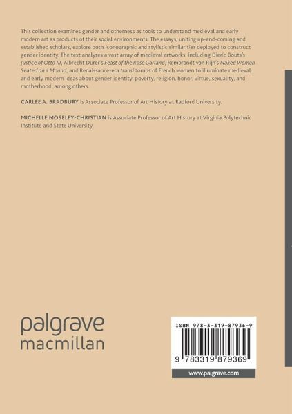 This collection examines gender and Otherness as tools to understand medieval and early modern art as products of their social environments. The essays, uniting up-and-coming and established scholars, explore both iconographic and stylistic similarities deployed to construct gender identity. The text analyzes a vast array of medieval artworks, including Dieric Bouts's Justice of Otto III, Albrecht Dürer's Feast of the Rose Garland, Rembrandt van Rijn's Naked Woman Seated on a Mound, and Renaissance-era transi tombs of French women to illuminate medieval and early modern ideas about gender identity, poverty, religion, honor, virtue, sexuality, and motherhood, among others.