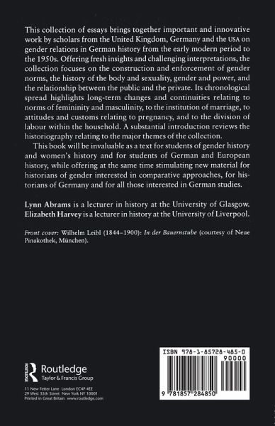 This collection of essays examines the construction of gender norms in early modern and modern Germany.; The modes of reinforcement by the state, the church, the law and marriage, and the resistance to these norms by individuals, are central to each of the contributions.; It examines discourses of the body and sexuality and the relations between gender and power. Similarly, the usefulness of the "public/private paradigm" familiar to gender historians is further challenged.