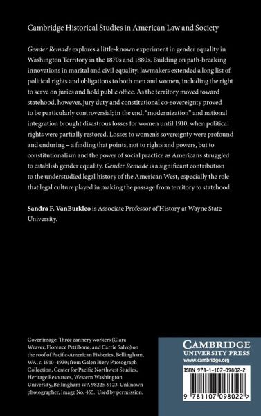 Gender Remade explores a little-known experiment in gender equality in Washington Territory in the 1870s and 1880s. Building on path-breaking innovations in marital and civil equality, lawmakers extended a long list of political rights and obligations to both men and women, including the right to serve on juries and hold public office. As the territory moved toward statehood, however, jury duty and constitutional co-sovereignty proved to be particularly controversial; in the end, 'modernization' and national integration brought disastrous losses for women until 1910, when political rights were partially restored. Losses to women's sovereignty were profound and enduring - a finding that points, not to rights and powers, but to constitutionalism and the power of social practice as Americans struggled to establish gender equality. Gender Remade is a significant contribution to the understudied legal history of the American West, especially the role that legal culture played in transitioning from territory to statehood.