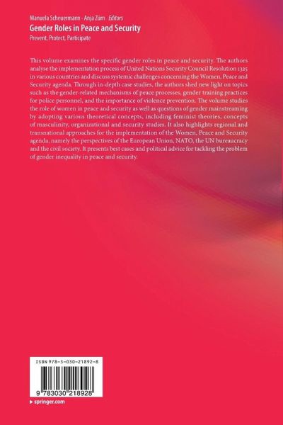 This volume examines the specific gender roles in peace and security. The authors analyse the implementation process of United Nations Security Council Resolution 1325 in various countries and discuss systemic challenges concerning the Women, Peace and Security agenda. Through in-depth case studies, the authors shed new light on topics such as the gender-related mechanisms of peace processes, gender training practices for police personnel, and the importance of violence prevention. The volume studies the role of women in peace and security as well as questions of gender mainstreaming by adopting various theoretical concepts, including feminist theories, concepts of masculinity, organizational and security studies. It also highlights regional and transnational approaches for the implementation of the Women, Peace and Security agenda, namely the perspectives of the European Union, NATO, the UN bureaucracy and the civil society. It presents best cases and political advice for tackling theproblem of gender inequality in peace and security.