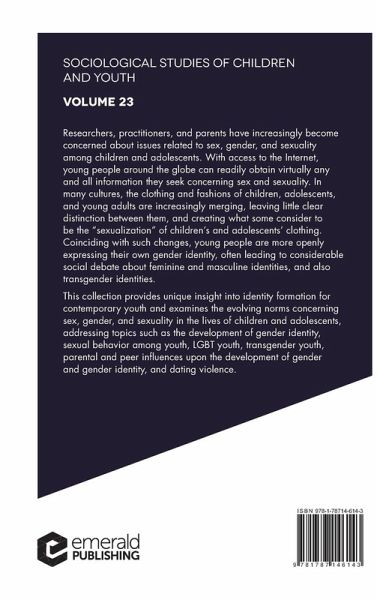 This volume examines the evolving norms concerning sex, gender, and sexuality in the lives of children and adolescents addressing topics such as: the development of gender identity, sexual behavior among youth, LGBT youth, transgender youth, parental and peer influences upon the development of gender and gender identity and dating violence.