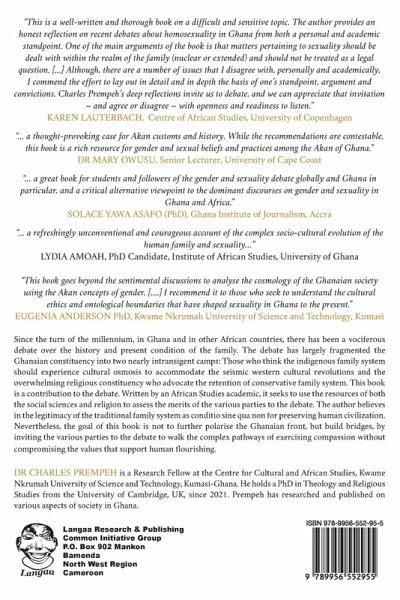 Since the turn of the millennium, in Ghana and in other African countries, there has been a vociferous debate over the history and present condition of the family. The debate has largely fragmented the Ghanaian constituency into two nearly intransigent camps: those who think the indigenous family system should experience cultural osmosis to accommodate the seismic Western cultural revolutions and the overwhelming religious constituency who advocate the retention of conservative family system. This book is a contribution to the debate. Written by an African Studies academic, it seeks to use the resources of both the social sciences and religion to assess the merits of the various parties to the debate. The author believes in the legitimacy of the traditional family system as conditio sine qua non for preserving human civilization. Nevertheless, the goal of this book is not to further polarize the Ghanaian front, but build bridges, by inviting the various parties to the debate to walk the complex pathways of exercising compassion without compromising the values that support human flourishing.